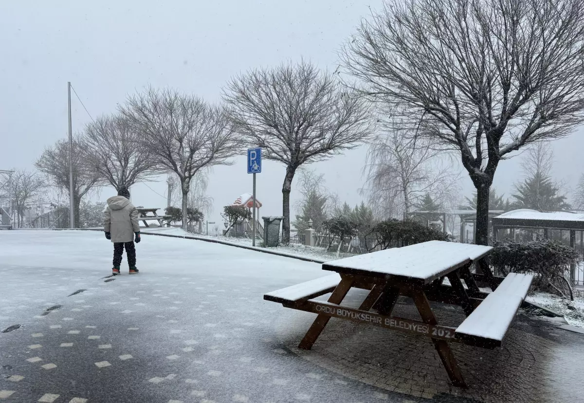 Ordu'nun deniz seviyesinden yaklaşık 500 metre yükseklikteki Boztepe, dün gece başlayan kar yağışıyla bembeyaz bir manzara kazandı. Şehrin gözde seyir terası, karla kaplanınca hem yerli hem de dışarıdan gelen ziyaretçilerin ilgisini çekti.