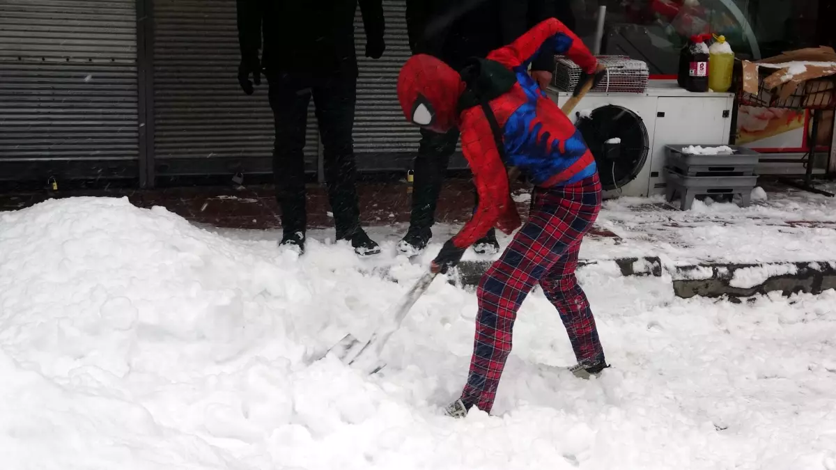 Ayaz Salih Koç, Örümcek Adam kostümüyle Erciş sokaklarını temizledi, çocuklarla kar topu oynadı ve depremzedelere moral oldu.